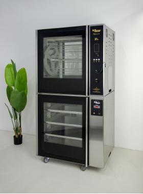 Установленный в единую колонну гриль-витрина с пароувлажнением. Гриль нового поколения, 8 спиц для одновременного приготовления 40 тушек 2-х кг, 8 корзин для кур и субпродуктов(опция), 8 угловых шампуров для кур (опция), возможно одновременное использование корзин и спиц для приготовления, мощный вентилятор конвекции, яркая галогенная подсветка камеры(600 Вт), 3 режима приготовления, термощуп, электронная панель управления, сквозной доступ в камеру гриля (2 двери), стекла гриля с теплоотражающим покрытием, полностью из н/стали c черным покрытием(на выбор клиента), 50-250 С, установлен на конвекционную витрину(4 противня), 13.1 кВт+3 кВт, единое подключение 380В, г.нетто 1030х860х2050мм, 391 кг., г.брутто 448 кг.