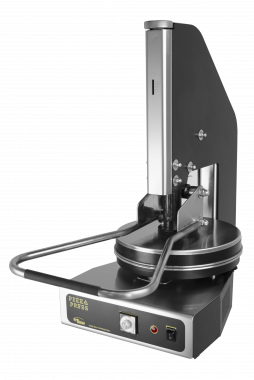 Механическое управление, 2 подогреваемые поверхности из полированной н/стали, регулировка толщины продукта 1-8 мм, диаметр готового продукта до 350 мм, полностью из н/стали, 3,0 кВт, г.нетто 350х600х900мм; 65кг; г.брутто:450х790х1100; 75кг